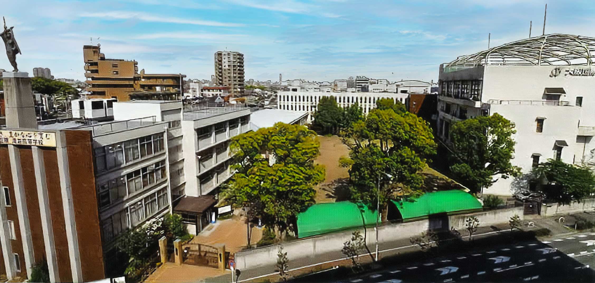 滝井高校は街の中にある学校。こぢんまりとした敷地いっぱいに、充実した施設が整っています。